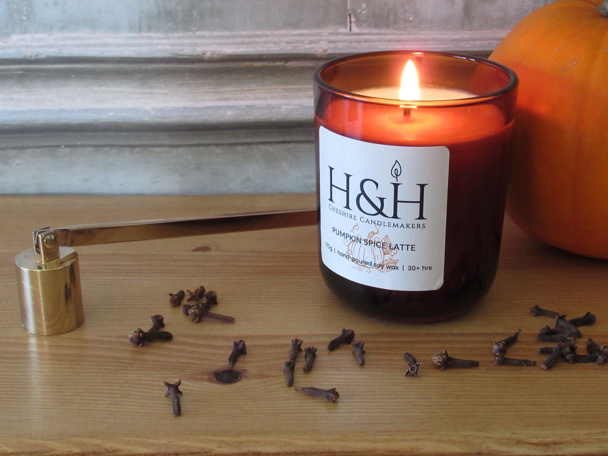 Our Pumpkin Spice Latte candle opens with the warm embrace of nutmeg and a hint of fruitiness, inviting you into the cosy season. The heart notes of ginger and clove add a spicy warmth leading to the base notes of caramel and vanilla creating a luscious, comforting finish. It's Autumn in a jar.
